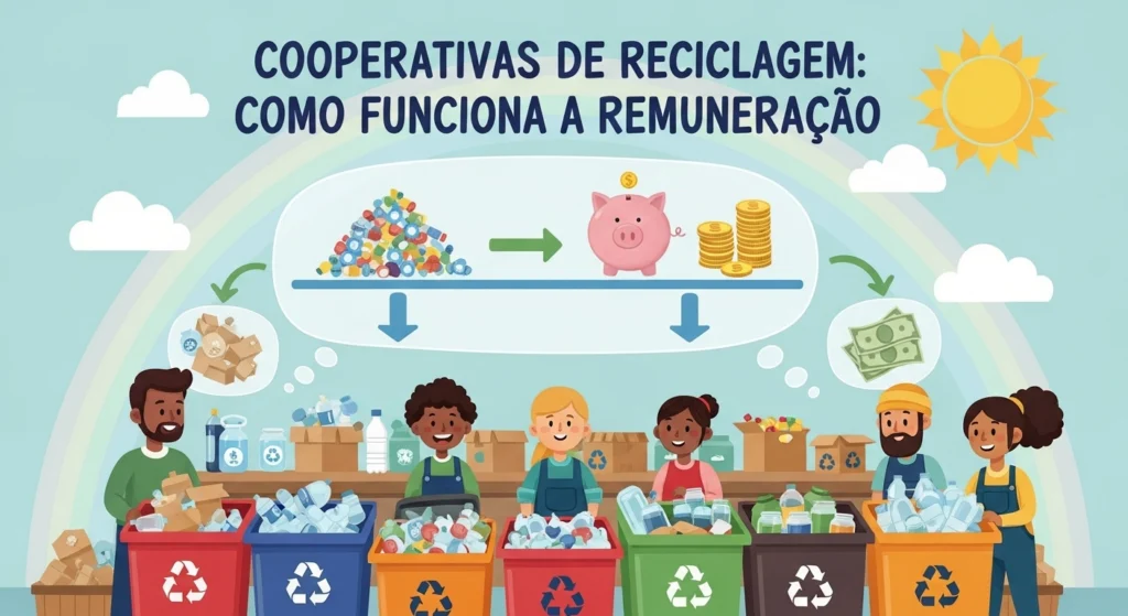 O sistema de remuneração nas cooperativas de materiais recicláveis é bastante diferente do que encontramos em empresas tradicionais. Não existe um salário fixo mensal como estamos acostumados a ver no mercado formal. Em vez disso, os cooperados recebem de acordo com a produção coletiva e, em alguns casos, individual.